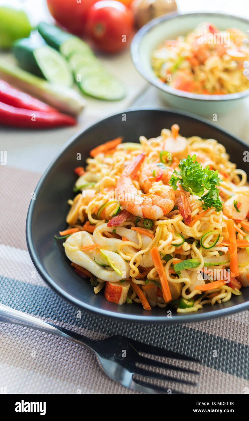 Malaysian Style Maggi Goreng Noodles With Prawn Stock Photo