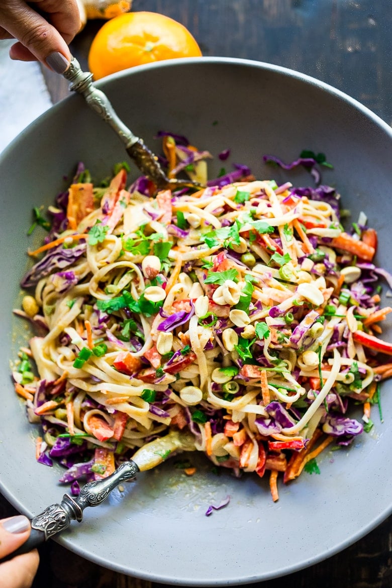 Rainbow Vegetarian Pad Thai With Peanuts And Basil Recipe